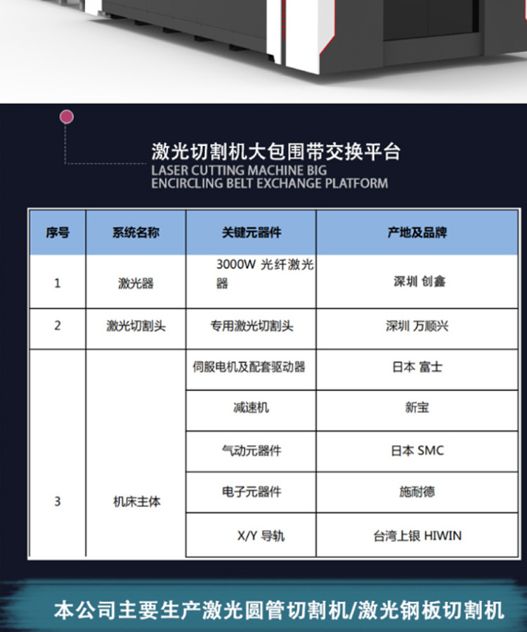 | 快進速度 | 1000(mm/min) | 切割頭 | 1 | 套裝 | 3015激光1000w,4020激光2000w,6015激光3000w,4020管板一體激光2000w |